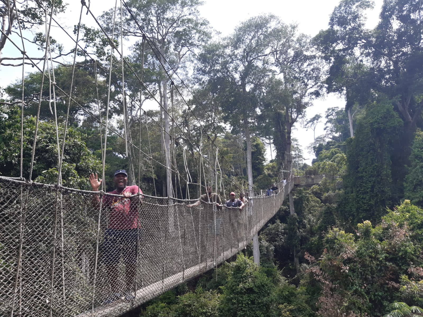 Embark on an unforgettable jungle safari adventure with our Kakum Canopy Tour! Explore Ghana's lush Kakum National Park, suspended 100 feet above the forest floor. Discover breathtaking views, diverse wildlife, adventure, nature, and rich cultural heritage.