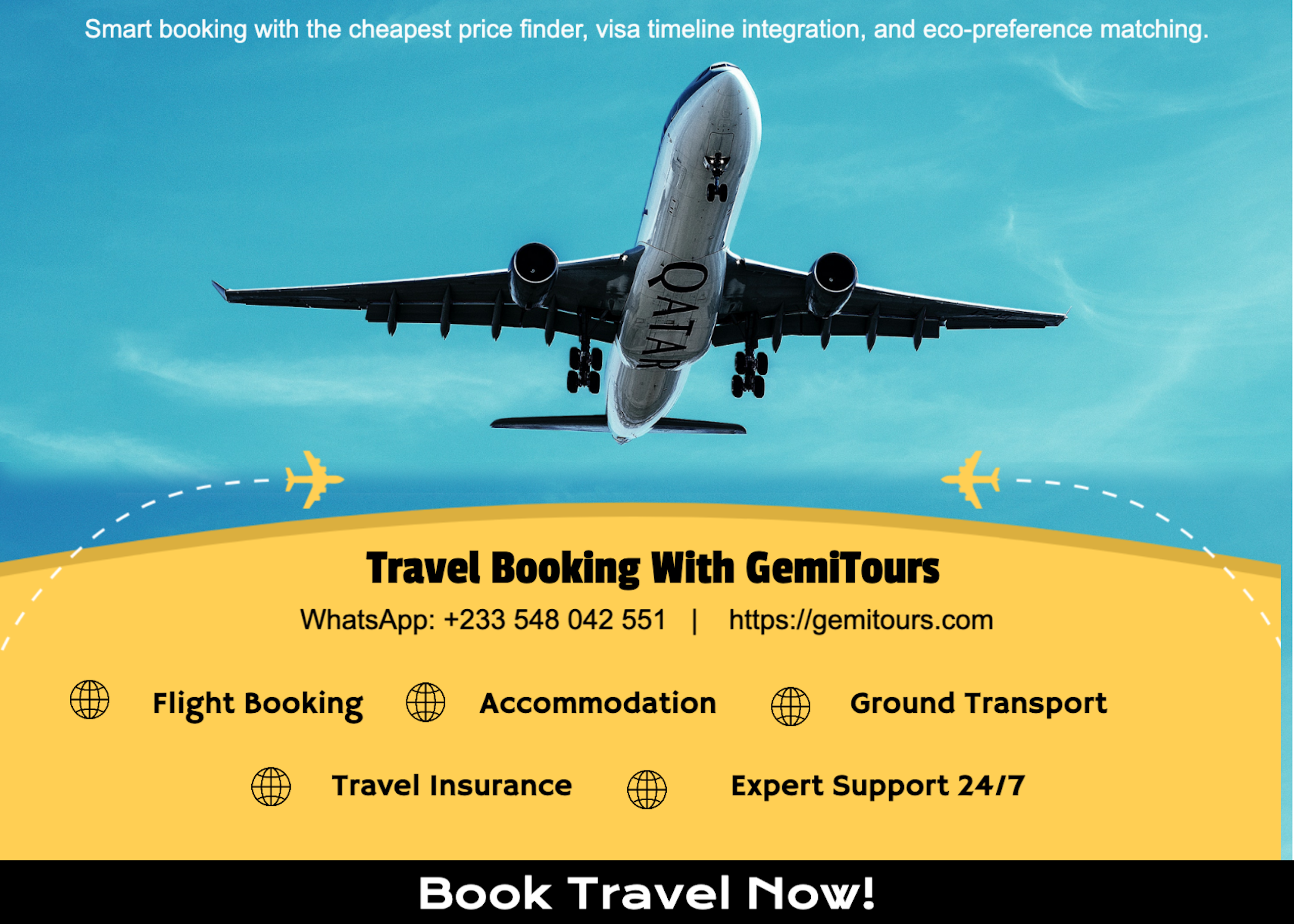 Our integrated approach ensures every aspect of your journey is optimized for cost-efficiency, compliance, and sustainability, from initial booking to final destination arrival. Based in Ghana's vibrant capital Accra, Gemi Tours leverages our strategic West African location and deep understanding of both African and international travel markets to deliver exceptional value to our global clientele.