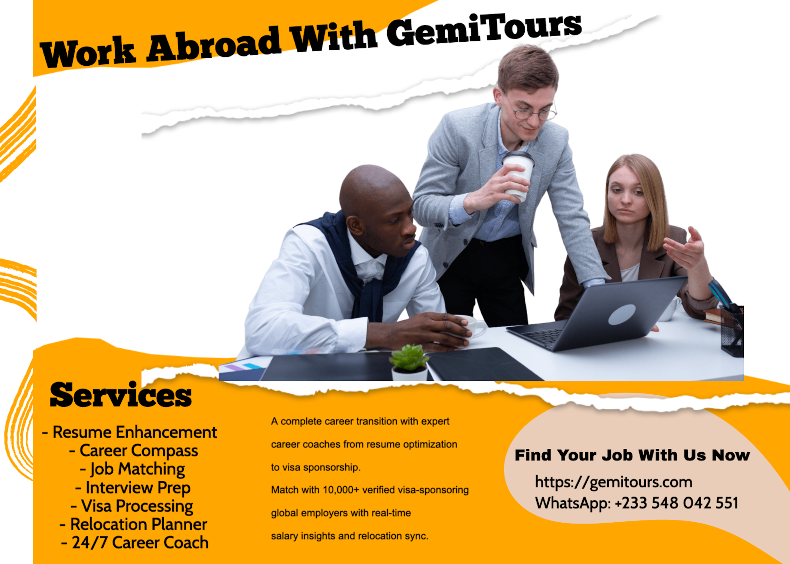 #TransformYourCareer #ElevateYourLife #WorkAbroad #CareerTransition #GemiTours #GhanaToTheWorld"